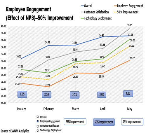 Speed Matters: EWNM has also developed a technique for converting multi-plane data into a single plane. The data is rebuilt with self-correcting digits so that the report accuracy can be maintained at 100%. This process has helped EWNM to cut down analytics reporting time by 80-90% even for the customized analysis and reports.