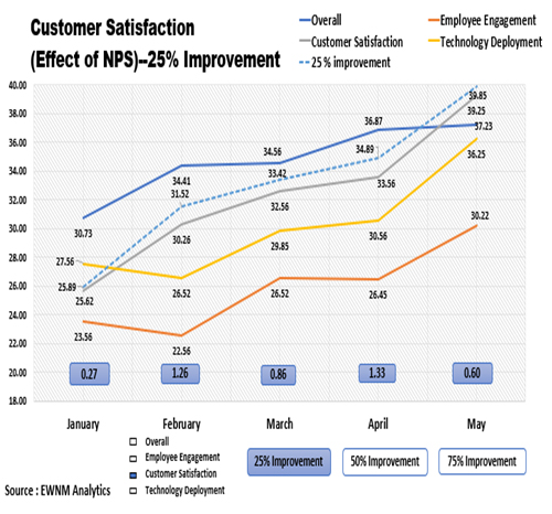 EWNM has capabilities to undertake customized analytics for customers and employees issues. Through our data modeling capability we evolve algorithms which give pinpointed solutions for client’s problem areas. E.g. one of our work is combining the IBM and the Bain theory in Data Analytics for driving out credible results for our clients. We have also developed the simulation techniques to point out the parameters which can improve the customers and employees response thereby cutting the time and resources required from the organizations for implementing correct decisions.